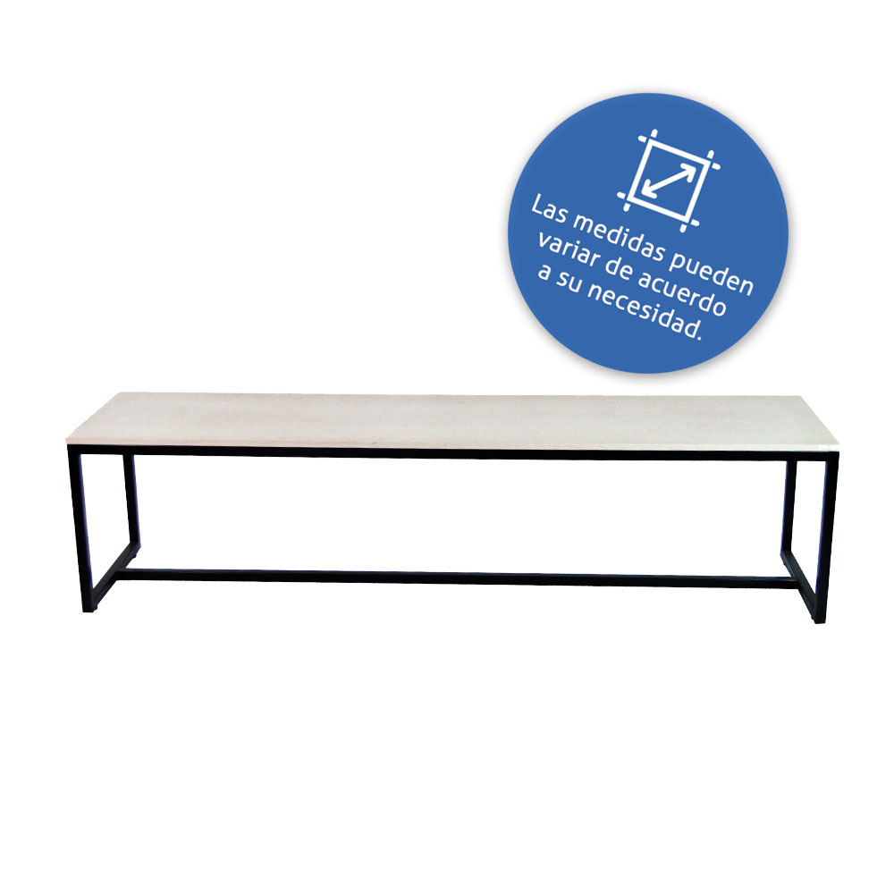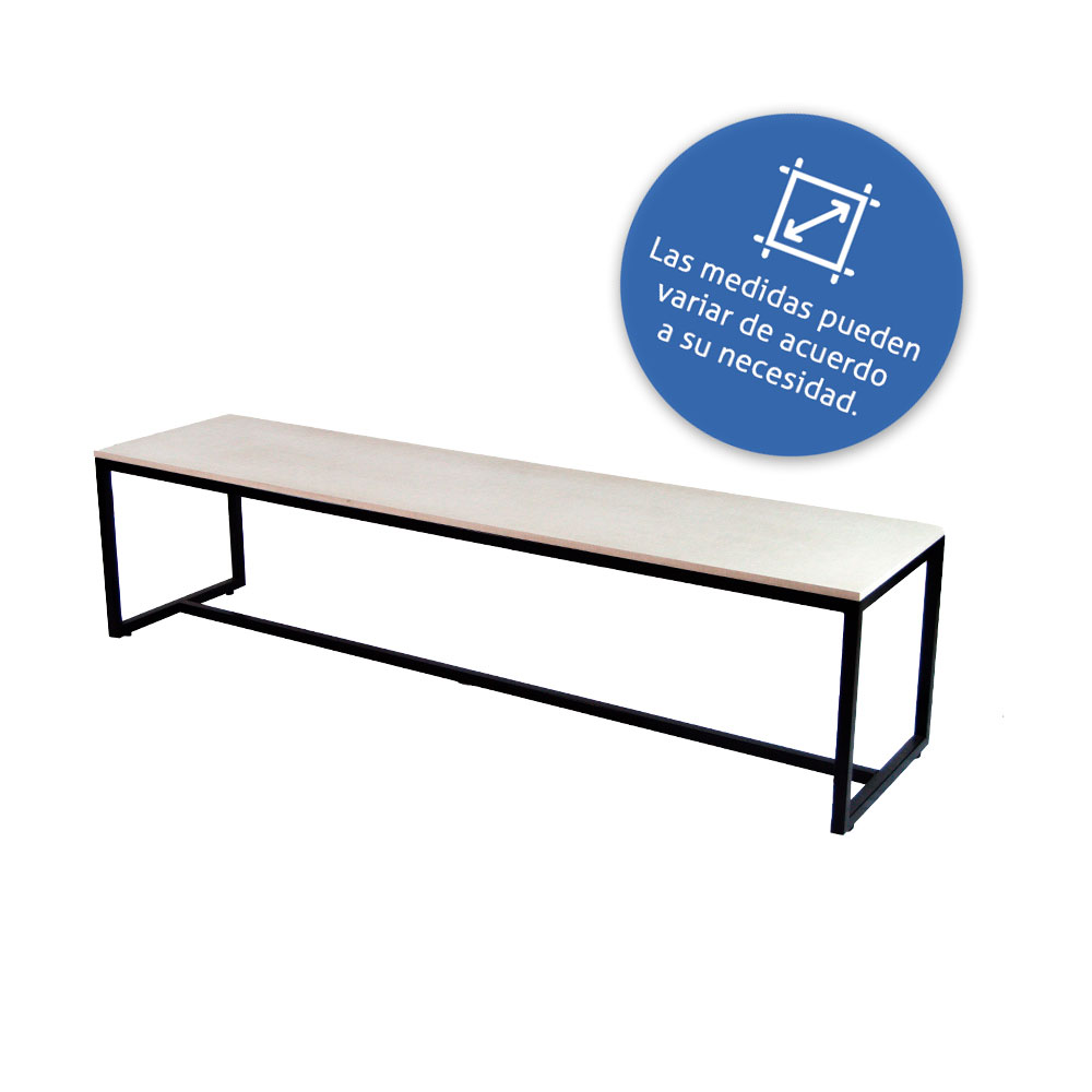 Banca medida 1.80x.40x.45alt, fabricada en melamina color a elegir, estructura tubular cuadrada 1×1 cal 18, acabado en pintura horneada esmaltada color a elegir (chocolate, negro, gris, blanco). Consta de niveladores de piso.