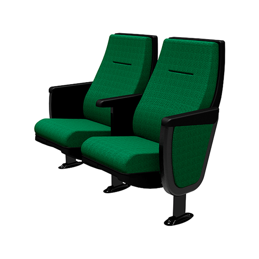 Asiento y respaldo tapizado en tela. Con asiento abatible por gravedad. Brazos inyectados en polipropileno de alto impacto. Color a elegir.