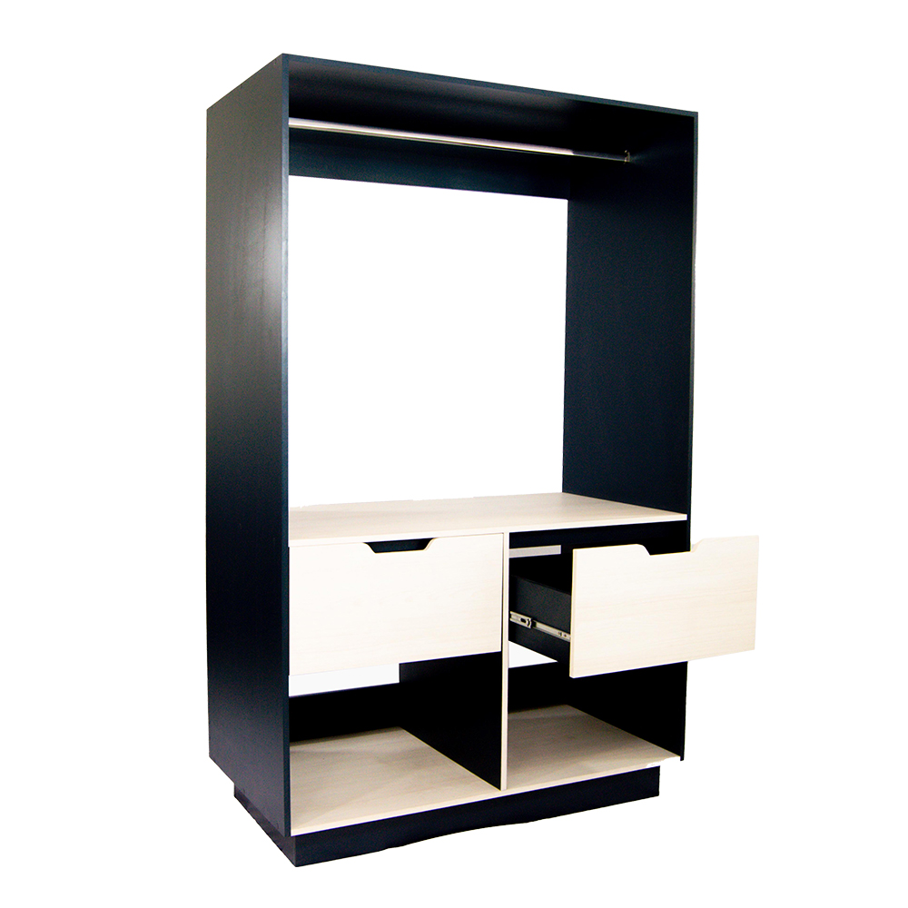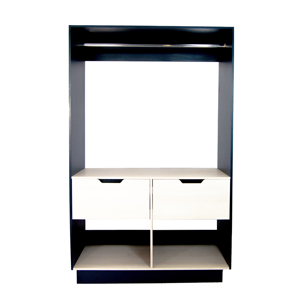 Modulo closet básico medida 1.20x60x1.90alt consta de 2 cajones amplios y 1 tubo oval cromado de colgar en melamina 16mm color elegir.