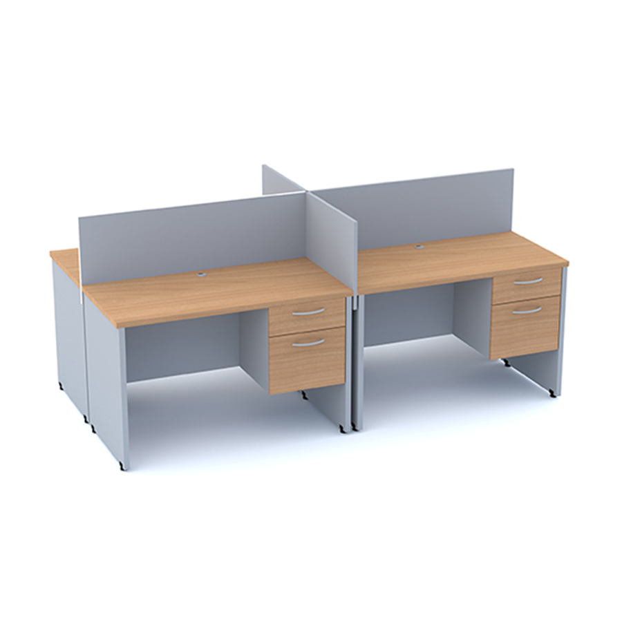 Módulos fabricados en melamina, con archivero suspendido con doble cajón, mamparas en melamina. Medidas: ajustables a sus necesidades.