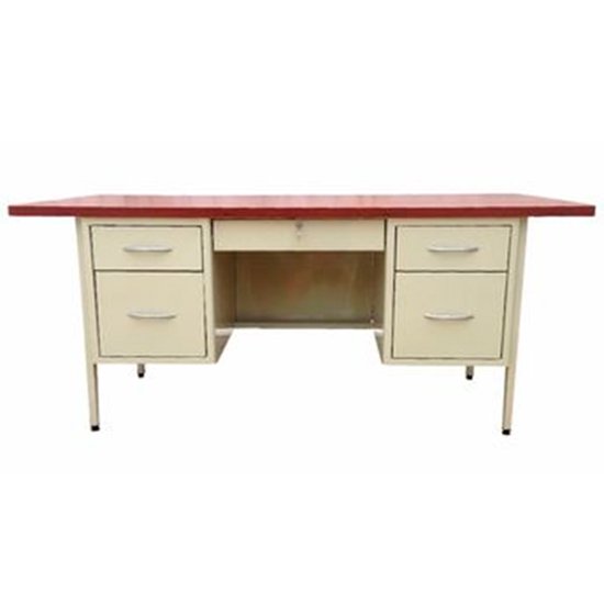 Descripción: Escritorio metálico, en lámina de acero cal. 22, cubierta en melamina de 28mm con cantos de pvc. Consta de doble pedestal con 2cajones, (cajón papelero, cajón archivero) y un cajón central. Acabado en pintura epóxica en polvo electrostática.