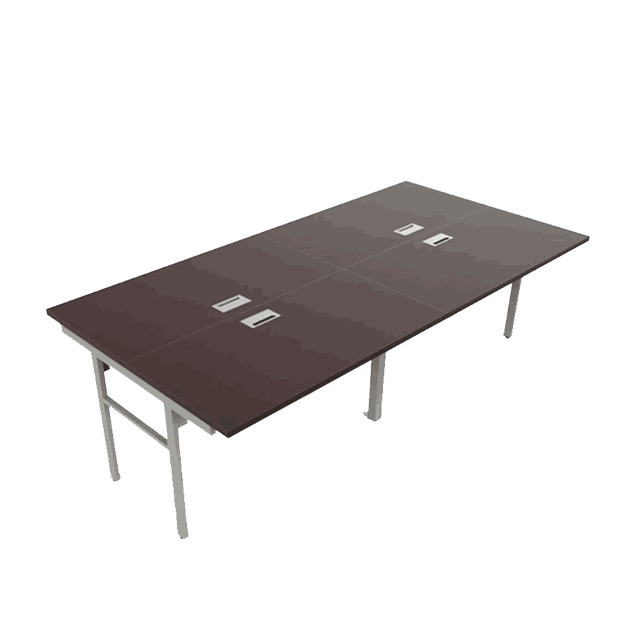 Estación de trabajo para 4 personas con cubierta de melamina, base de estructura tubular de acero. Groumet de aluminio pasacables y canaleta incluidos.