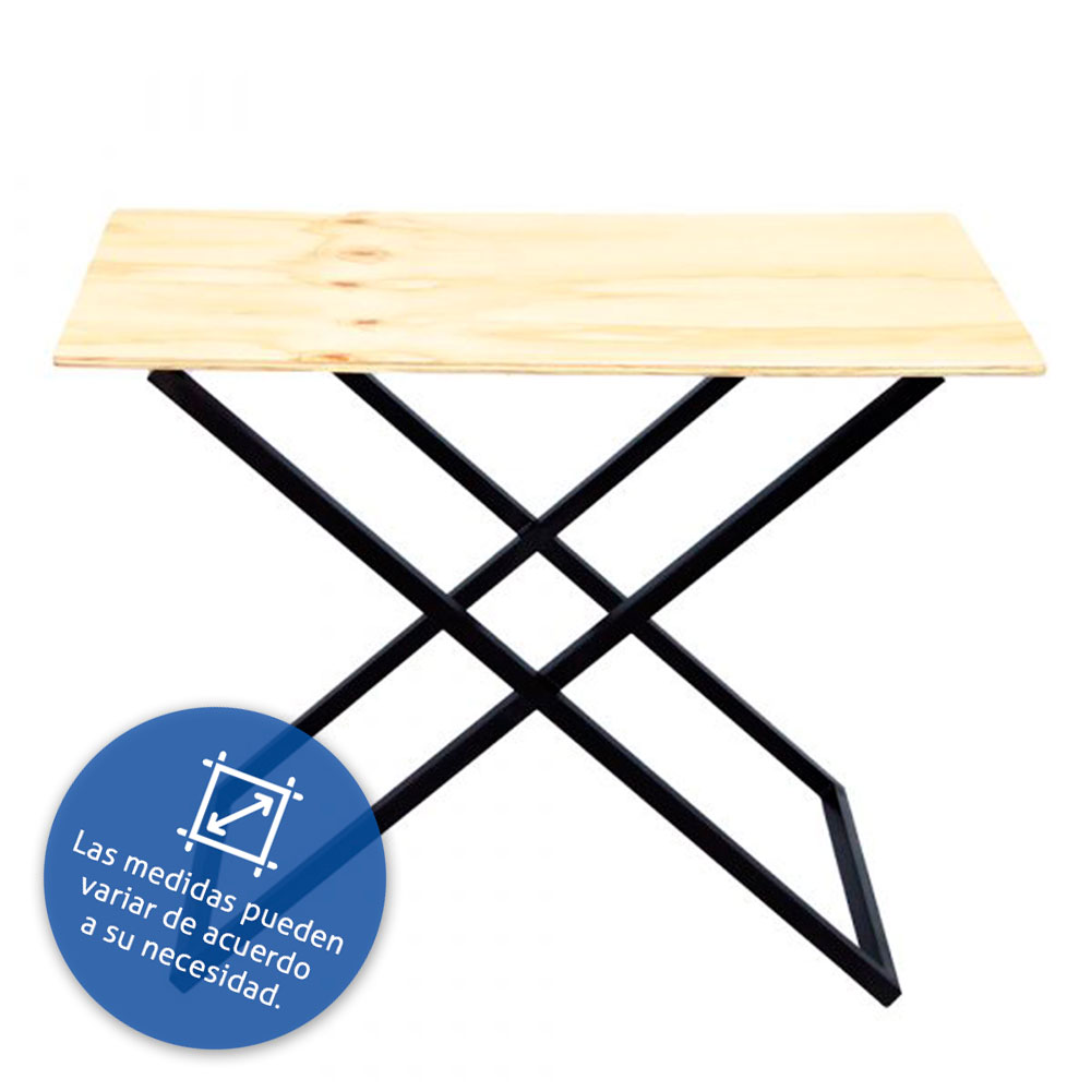 Mesa 1.00x55x76alto cubierta triplay pino 15mm base cruzada tubular cuadrado 1”x1” en pintura electrostática color a elegir (negro, gris, blanco, chocolate).