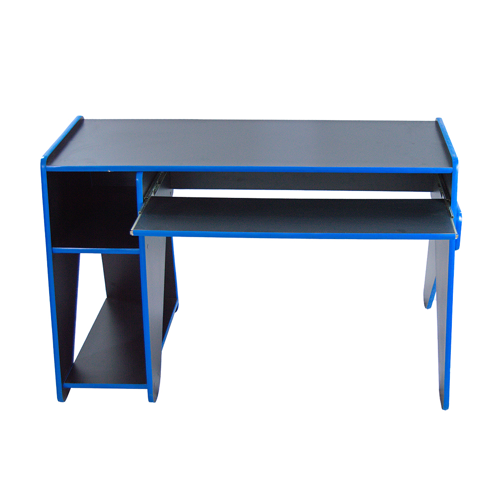 Mesa medida 1.20x.43x.78alt fabricada en melamina color a elegir, cinta PVC azul, consta de porta CPU y porta teclado.