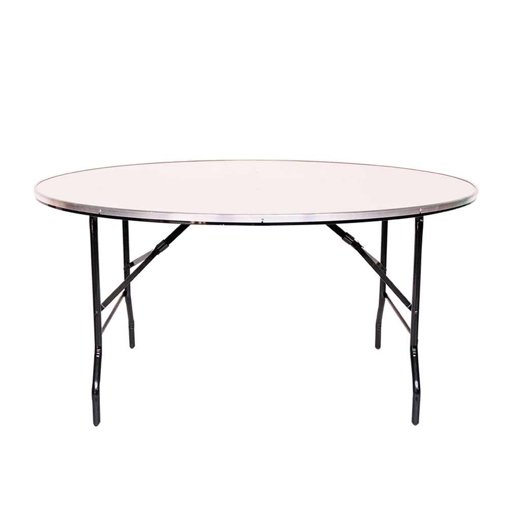 Mesa redonda 1.50mts. Cubierta fibra de vidrio, cubre canto pecho paloma aluminio, estructura tubular ¾” x 1 ¼” y pata mecanismo oculto tubo 1” en pintura electrostática negro.
