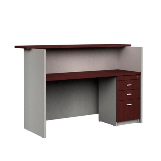 Descripción: Recepción fabricada en melamina de 28mm de espesor, con pasacables redondo de 2”; consta de  cajonera móvil (2 cajones papeleros y un cajón archivero) y niveladores de piso.