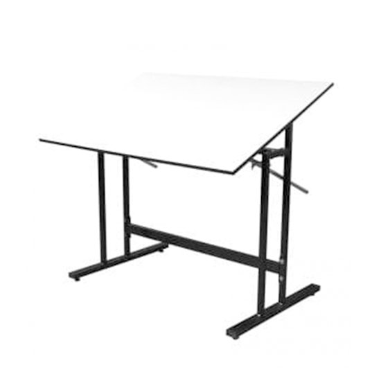 Descripción: Restirador de tablero melamínico de 16mm de espesor, dos caras blnco, con cubrecanto negro. Montado a una base tubular cal. 18, esmaltado en color gris. Con sistema de inclinación de tres posiciones. Cumple con normas y especificaciones de la más alta calidad.