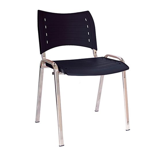 Descripción: Asiento y respaldo en dos piezas en polipropileno, estructura de acero tubular ovalado con terminado en cromo. Opción de tubular con terminado esmaltado en color negro y opción de asiento acojinado tapizado en tela o vinil. Peso máximo de resistencia 120kgs.