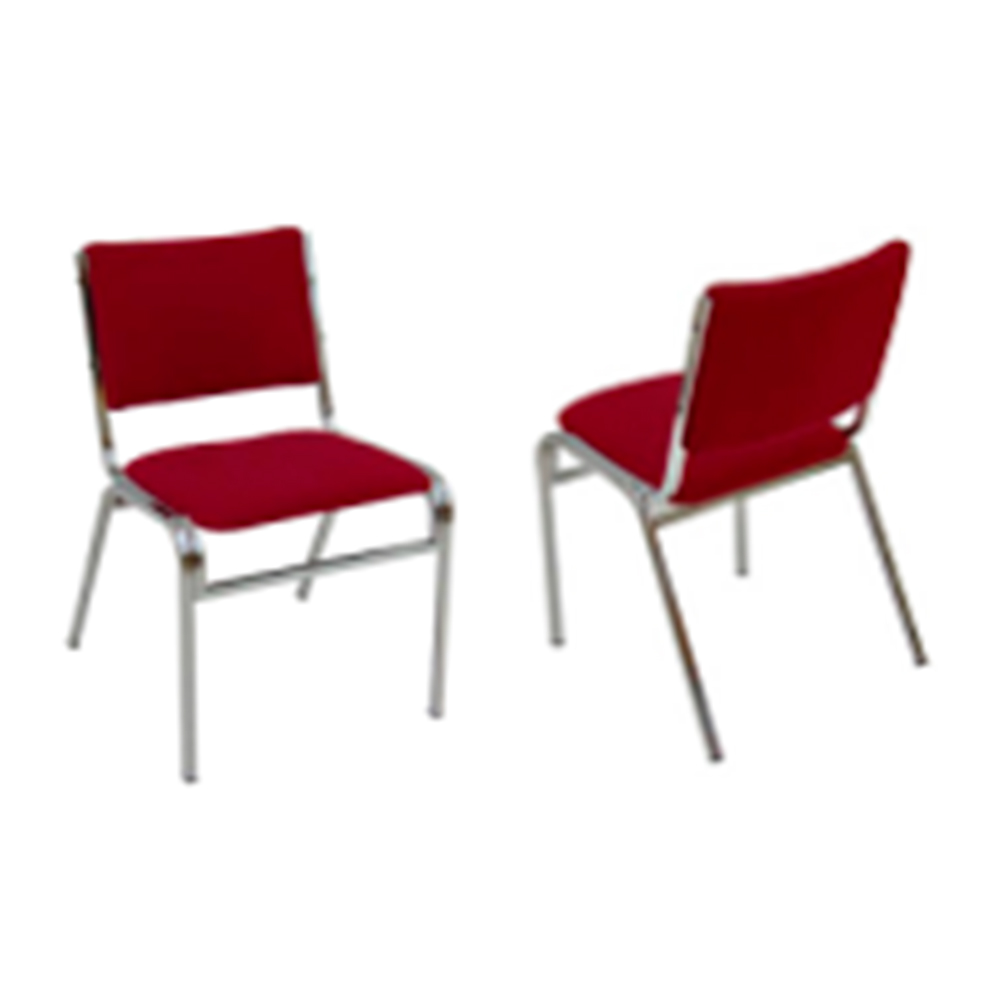 Silla con asiento y respaldo en madera industrializada, hule espuma y tapizada en tela o vinil. Estructura en tubular cuadrado ¾” cal. 18 con acabado en pintura horneada color negro. Opción acabado en cromo.