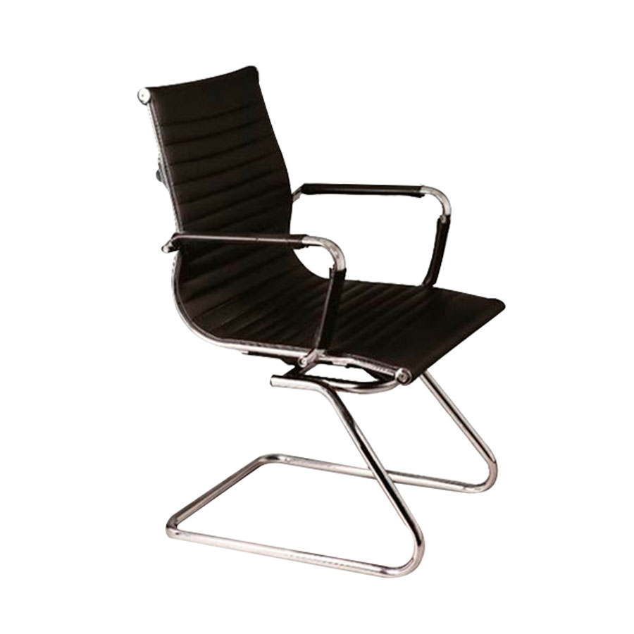 Descripción: Sillón de visita con respaldo y asiento tapizado de un solo corte, tensado con la estructura para dar una suspensión única, estructura en acero tubular ovalado con terminado en cromo, base tipo trineo en acero tubular redondo, terminado en cromo. Peso máximo de resistencia 160kgs.