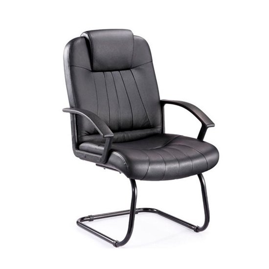 Descripción: Silla de visita tapizada en vinil o piel de alta resistencia, brazos fijos de polipropileno con diseño ergonómico, base tipo trineo, esmaltada con pintura epóxica electrostática color negro y regatones en polipropileno.
