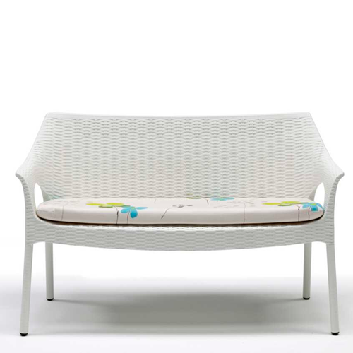 Asiento y respaldo en polypropileno con diseño tejido con brazos.